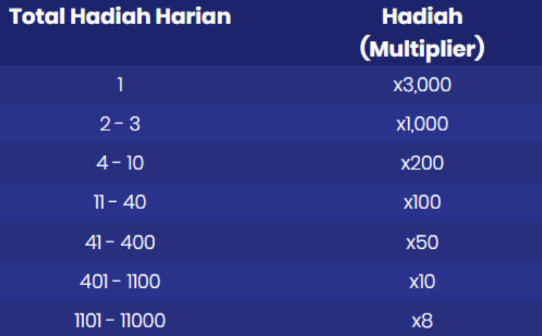 2. Total hadiah Rp 2,9 MILIAR akan dibagikan kepada 12.000 Pemain, setiap hari selama periode promo berlangsung.
