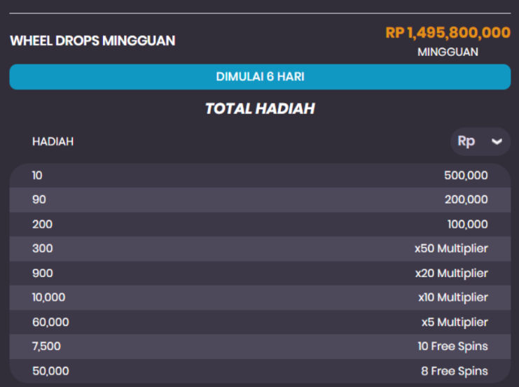 Syarat dan Ketentuan Wheel Drops Mingguan :